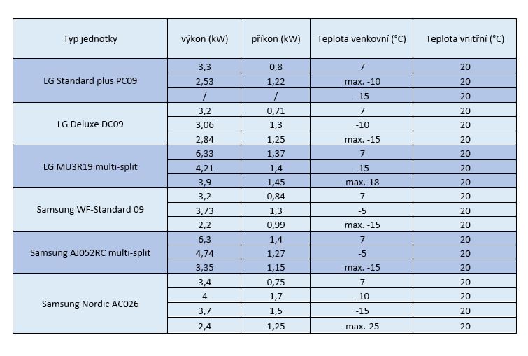 Klimatizace – 3,3 kW topný výkon, příkon 0,8 kW